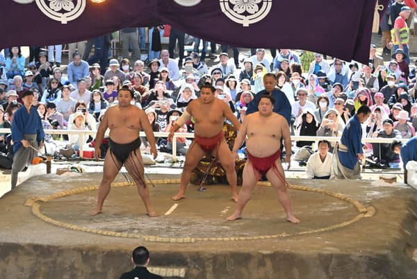 在神社相撲場搭建的特別擂台上,今年的節目包括女子職業摔角組織的首場奉納表演。需購票入場。