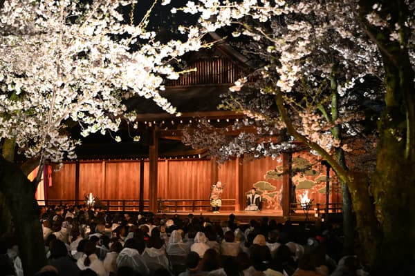 靖國神社的能樂堂——據說是東京最古老的能樂堂——舉辦「夜櫻能奉納」,由一流的能樂和狂言表演者在櫻花樹下呈現古典戲劇之夜。今年的演出預定於4月6日(週一)和4月7日(週二)舉行,下午6:10開放入場,下午6:45開演。需購票入場;詳情請見下文。