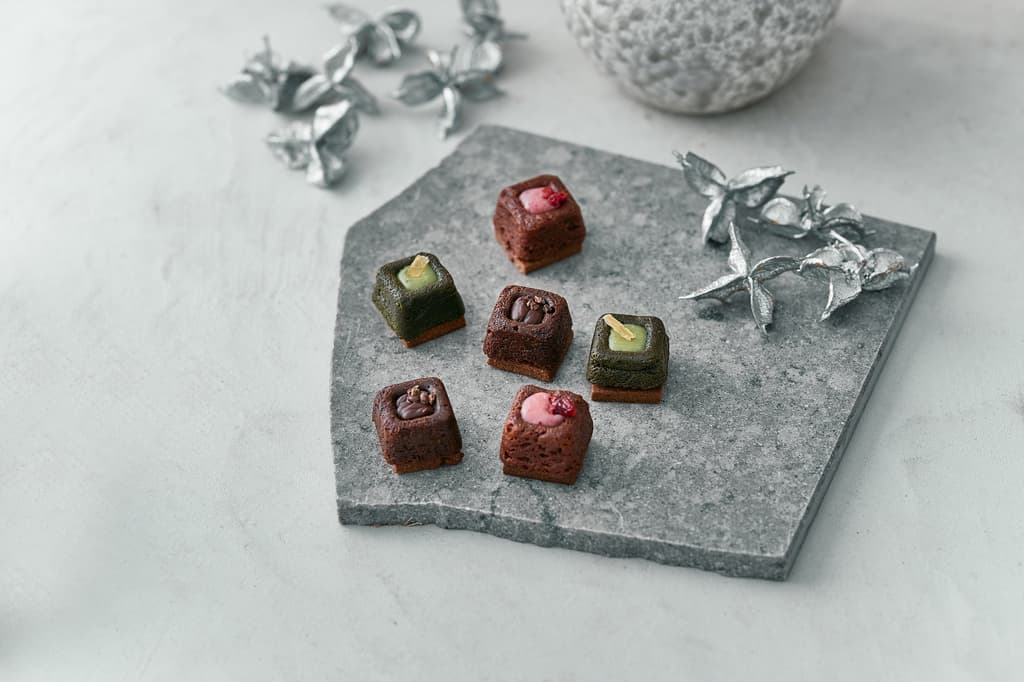 獨特的三層結構,由甘納許、蛋糕和薩布列組成,並在每種口味上添加不同的配料,旨在讓質地、香氣和味道在每一口中分階段展開。