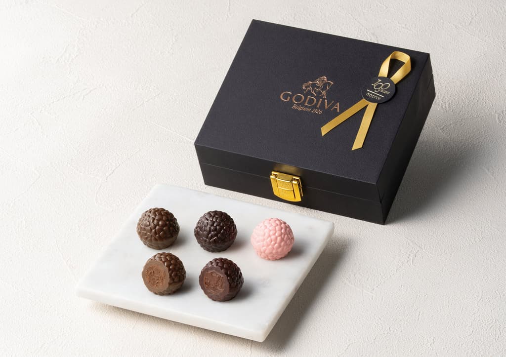 可可,大地孕育的珠寶。為慶祝 GODIVA 成立 100 週年,五位活躍於全球舞台的星級主廚創作了限量版松露巧克力,透過他們獨特的感性表達了對可可的深刻讚賞。該系列的核心星級主廚之一 Pierre Marcolini 解釋說:「GODIVA 最大的特色之一就是它的松露巧克力。受到芳香食材『松露』的啟發,這種不規則且粗糙的新形狀為經典松露巧克力增添了現代感,同時賦予它們更結構化和現代的意義。」