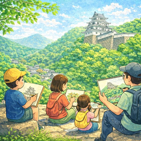 一個寫生活動,參與者可以繪製被翠綠植物環繞的城堡。詳細資訊可在城堡、舊市鎮廳紀念館、城下町廣場、博覽館或郡上八幡站取得。