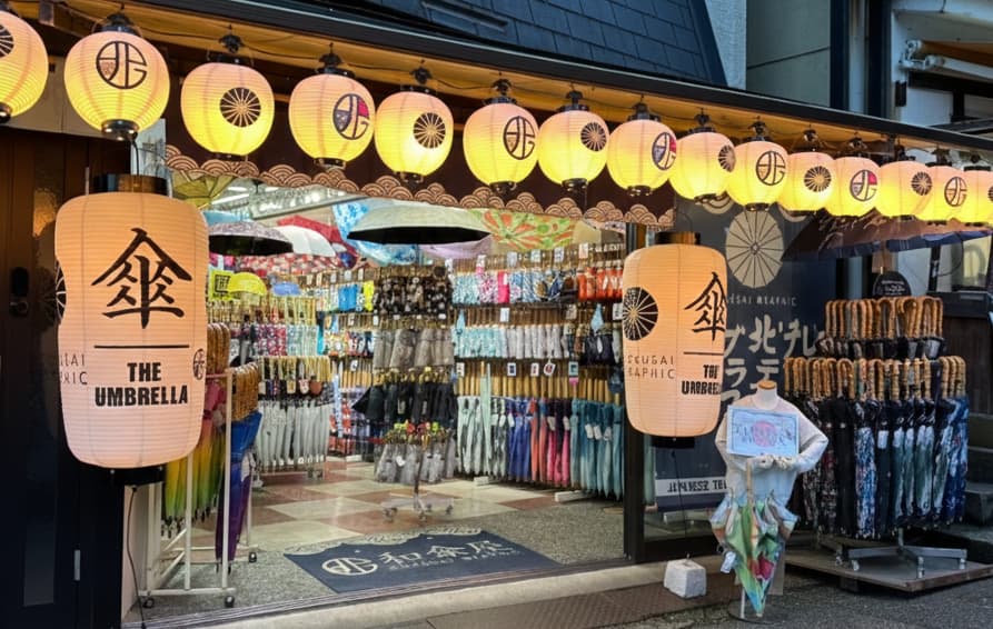 該店新增了四個展示架,使雨傘庫存增加了約 1,200 件。這創造了一個沉浸式的購物環境,遊客可以在一個空間內瀏覽、選擇和體驗日式雨傘。