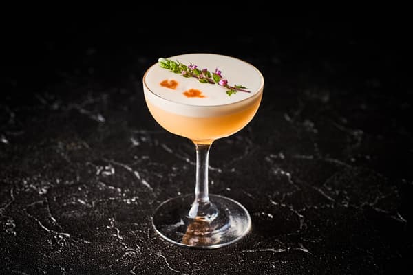 以「いいちこサイテン」燒酎製成的自製梅酒為基底,疊加杏桃的柔和甜味與檸檬的清亮酸度,交織出層次豐富的口感。加入蛋白,帶來入口即化的輕盈質地,是一款兼具色彩與風味的活潑調酒。