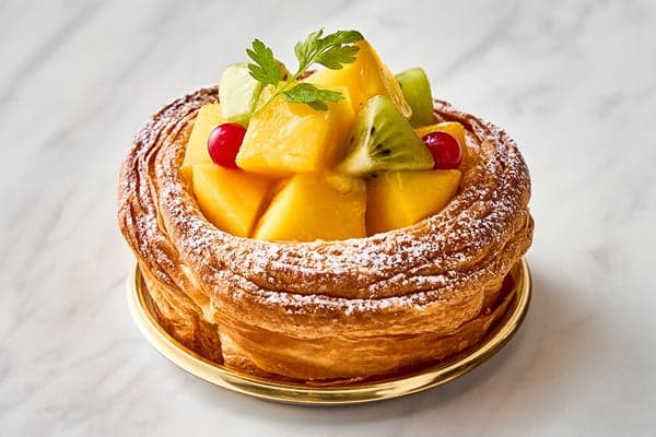 配合初夏時節,店內首度推出冷藏甜點新品。酥皮使用奶香濃郁的千層麵團,搭配以「Egro Royal」雞蛋、北海道鮮乳及香草豆製成的自製卡士達醬。頂部慷慨鋪上當季新鮮芒果,帶來清爽怡人的水果風味組合。