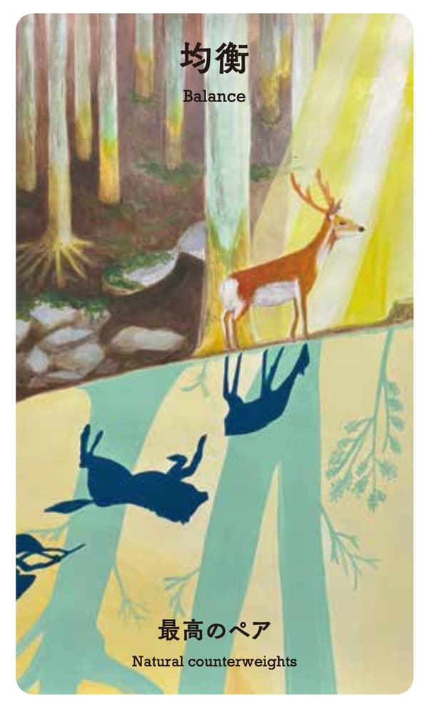 展出36幅「天地卡」系列的原創插圖,描繪了森林、河流和海洋之間流動的宏偉生命循環。這些作品由藝術家山路桃果根據自然活動家船越幸代從大自然中接收到的感覺和訊息創作,以故事書般的風格呈現,具有柔和的光線、獨特的詮釋和精緻的細節。原作傳達了一種複製作品無法完全捕捉的能量。