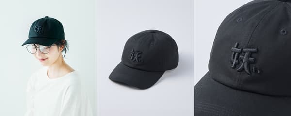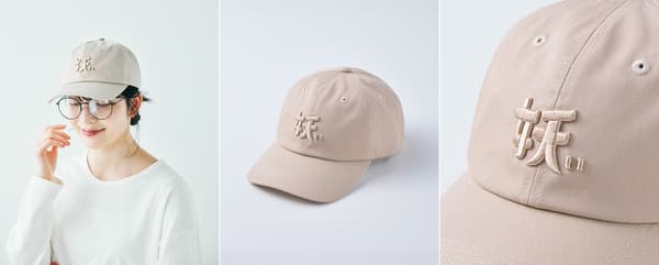 這款帽子傳達了「妖怪無處不在,即便肉眼不可見」的意境。共有米色與黑色兩種選擇,外側以同色系縫線繡有「妖ぃ (ayakashii)」字樣的 3D 立體刺繡,質感低調優雅。