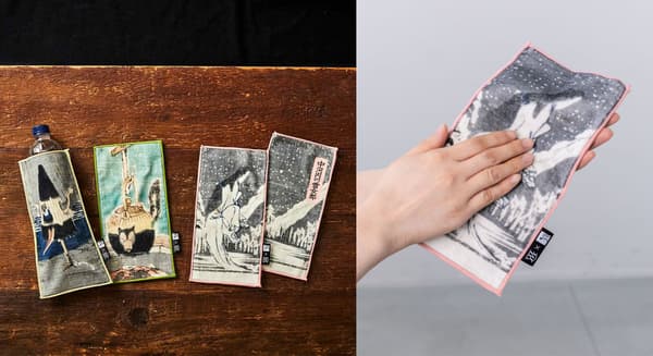 這款專為寶特瓶尺寸設計的吸水毛巾,讓您隨時隨地都能帶著妖怪同行。設計靈感取自江戶時代的圖版遊戲《百種怪談妖怪雙六》。精選了三種廣為人知的妖怪:文福茶釜(茂林寺的茶釜)、雪女(中河內的雪女)以及傘妖(鷺內的一腳傘怪)。