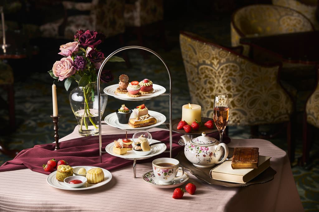 位於一樓的大廳酒廊今年再次推出奢華的草莓下午茶,採用當季草莓。本季的甜點由行政糕點主廚Frederic探索優質日本草莓的魅力。他精心挑選了與草莓完美搭配的濃郁風味食材,包括黑莓茶、焙茶、巧克力、堅果和起司,以提出新的風味組合。