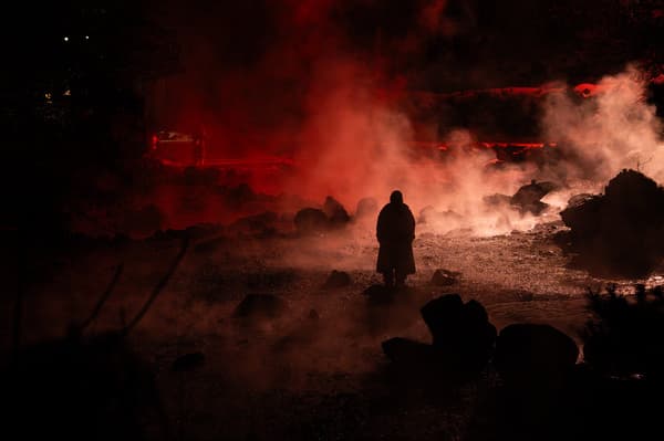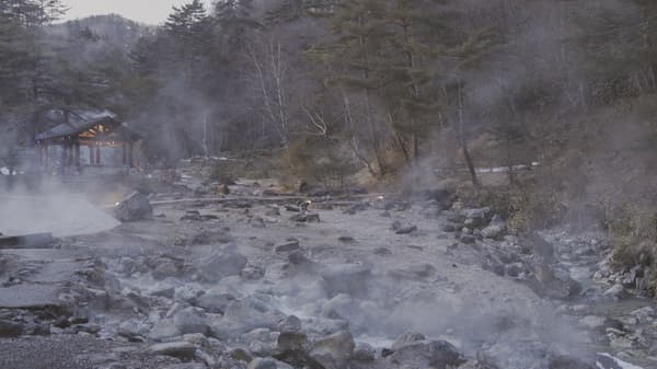 拍攝當日正值降雪,溫泉蒸氣、人工燈光與紛飛雪花相互交融,呈現出一幅游走於現實與超現實之間的視覺畫面。