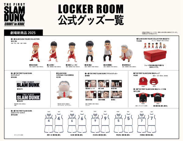 「LOCKER ROOM」區域的設計旨在喚起賽前球隊更衣室的氛圍,將出售各種官方商品。其中包括首款山王制服套裝和廣受歡迎的FIGURE COLLECTION系列的新品,以及其他2025年劇場版商品。